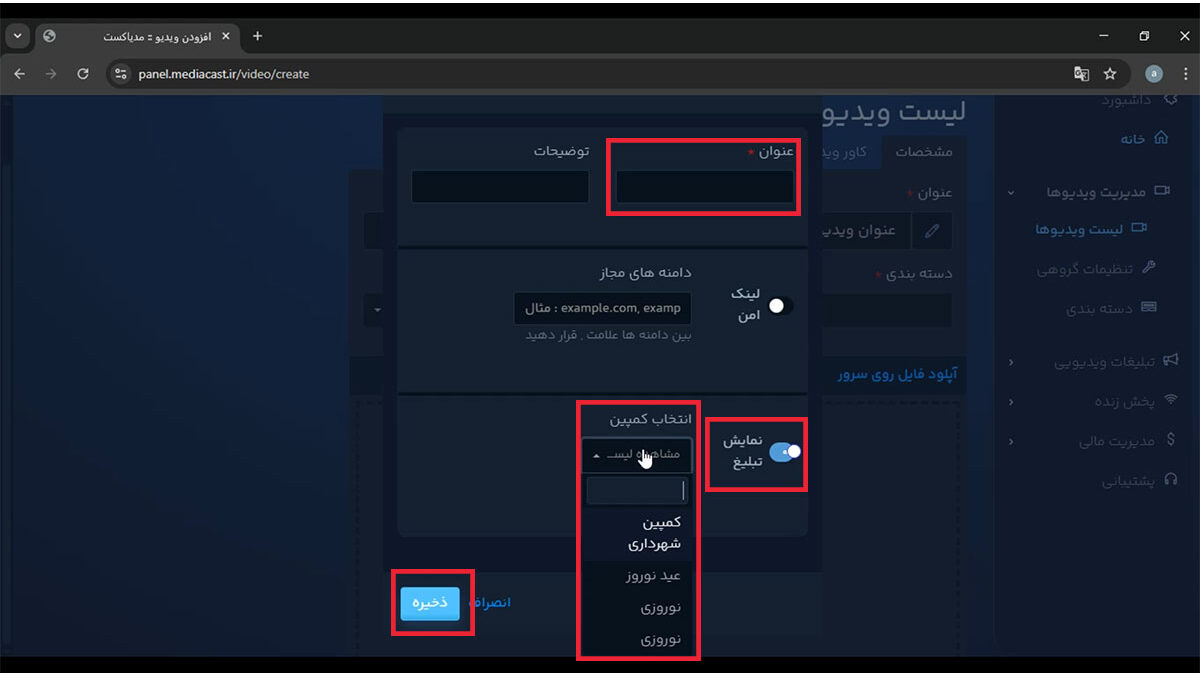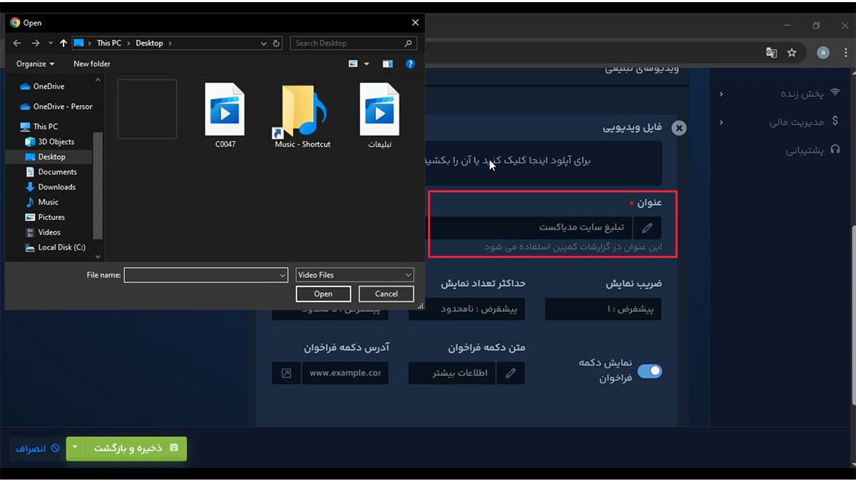 مرحله چهارم: آپلود ویدیو تبلیغاتی