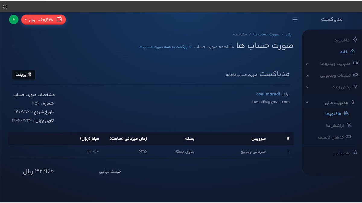 مدیریت فاکتورها در مدیاکست بهسادگی و تنها با چند کلیک انجام میشود.